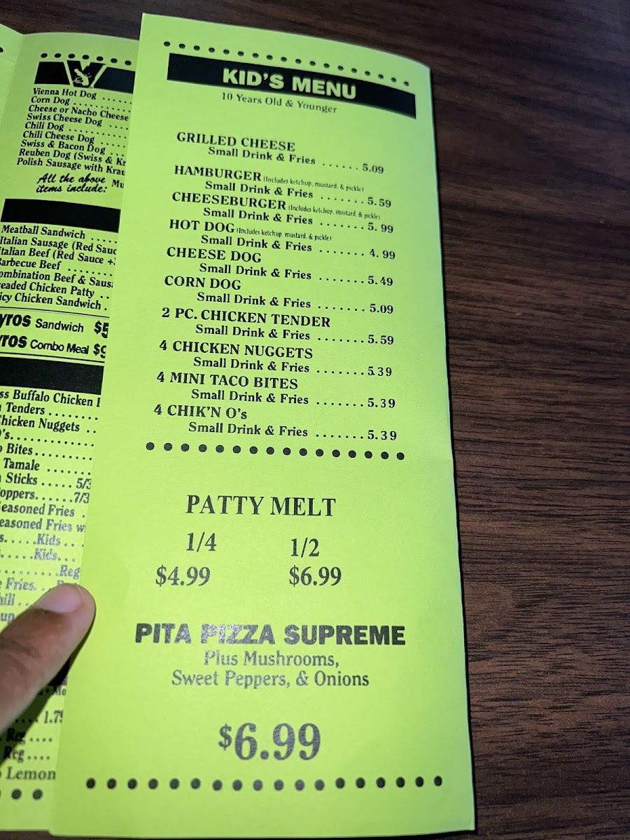 Small Drink & Fries. Includes ketchup, mustard, & pickle