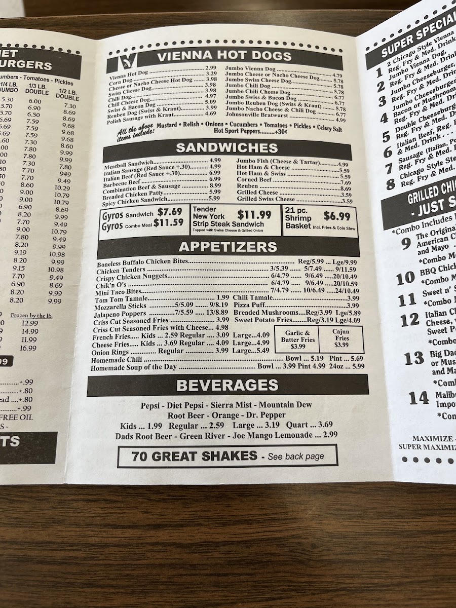 2 Chicago Style Vienna Dogs, Reg. Fry & Med. Drink